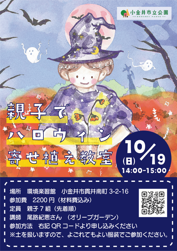 環境楽習館ではハロウィン向けの寄せ植え教室を行います。親子でご参加ください。作り終えた後はお家に飾ってハロウィンを楽しみましょう!