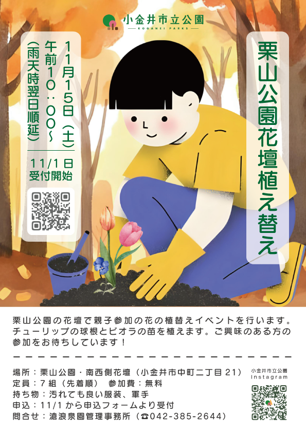 栗山公園の花壇で親子参加の花の植替えイベントを開催いたします。