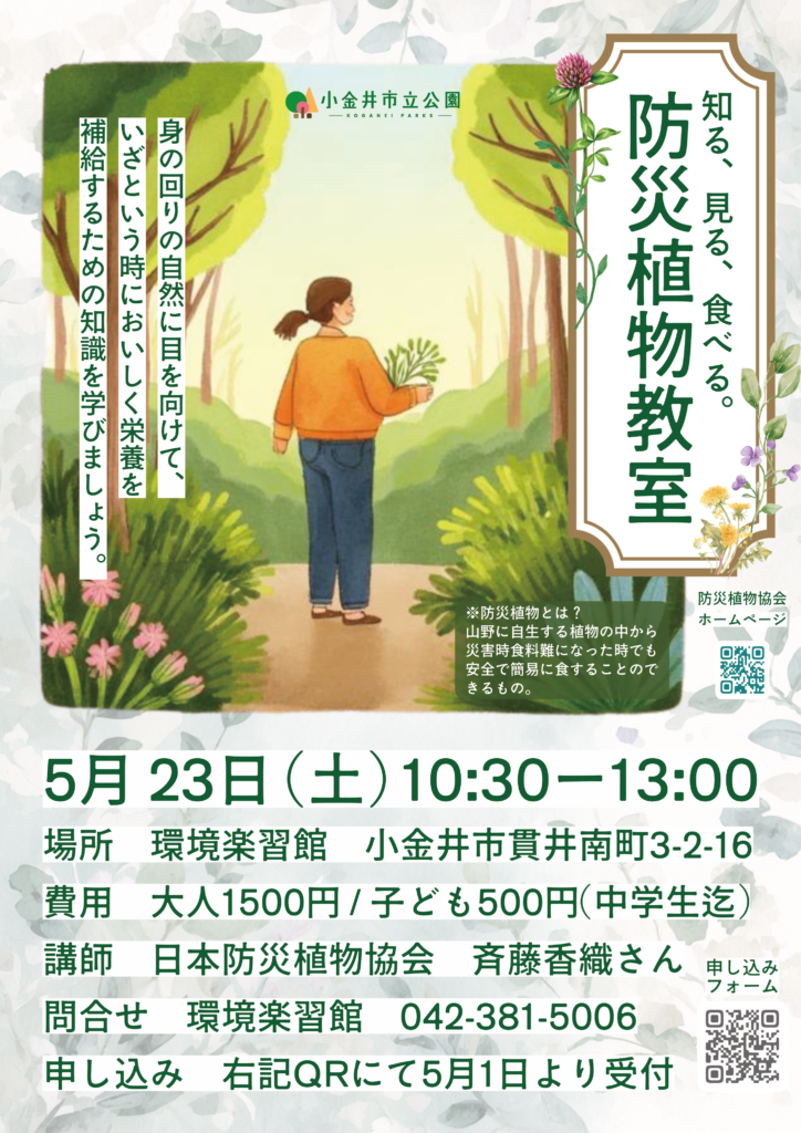 日本防災植物協会の講師とおいしく学ぶ時間を過ごしましょう。防災植物を使った試食会も行います。